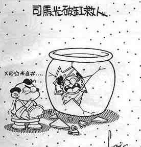 在寒冷的冬天,司馬光打破水缸救出同伴